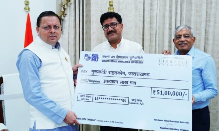 Home उत्तराखंड "सीएम राहत कोष में स्वामी राम हिमालयन यूनिवर्सिटी ने दिए ₹51 लाख"