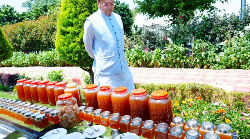 सीएम धामी ने मधुमक्खी पालन से शहद निकालने की प्रक्रिया का लिया जायजा